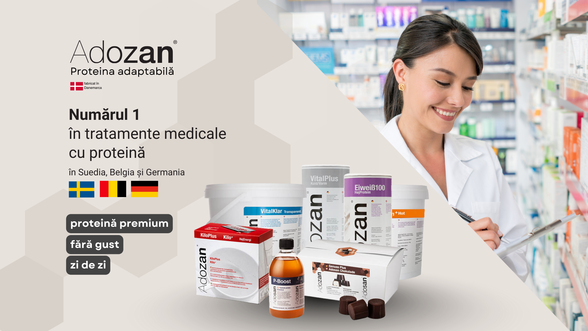 Suplimente proteice de înaltă puritate pentru farmacii, spitale și centru de îngrijire. Susținem recuperarea pacienților prin produse versatile și eficiente. Adozan aduce pe piața din România soluții de nutriție medicală special concepute pentru prevenirea și tratarea malnutriției, sarcopeniei și pentru susținerea recuperării post-operatorii. Produsele noastre sunt dezvoltate pentru a oferi o complianță maximă din partea pacientului, eliminând barierele obișnuite ale suplimentelor clasice.